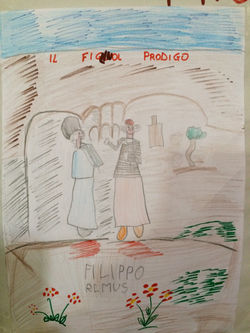 I bambini dell'oratorio, con grande entusiasmo e trasporto, hanno prodotto la composizione di pannelli di legno che rappresenta la Passione di Nostro Signore Gesù Cristo. Sotto un'attenta guida hanno utilizzato una tecnica molto semplice, ma di grande effetto: dopo aver trasferito le immagini scelte sulle tavolette, ogniuno di loro ha ripassato con il pirografo i contorni del disegno. La composizione di tavolette é uno zoom sul centro della Croce, ogni tavoletta rappresenta una delle 15 stazioni della Via Crucis, al centro di esse trionfa l'icona bizantina della Resurrezione, ai quattro angoli i simboli degli Evangelisti.